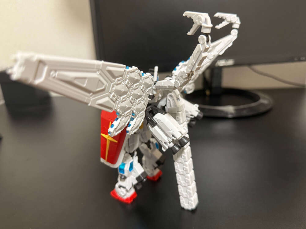 ガンダム像verと、グラスフェザー装備verが作れていいですね。武器もいろいろと変えられるようですが、下図の状態がお気に入りです。ビームサーベルもそのうち入手したい。。。